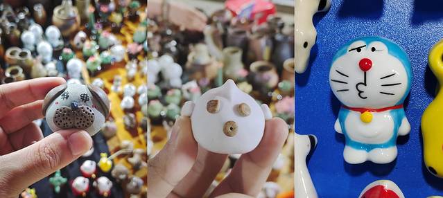 比起各种各样的陶瓷,这里也卖一些可以博人一笑的小玩意、小摆件,或者紧随年轻人的真实内心,或者潦草到引人发笑,反正这里的地摊不乏精细。