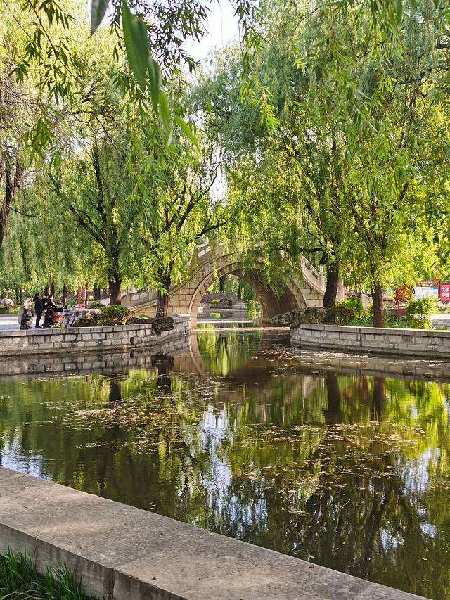 民族公园里面小桥流水,很是漂亮,公园儿有两侧还临河,水资源丰富。零零散散有健身大爷大妈们,宁静中添了一丝人气。卫生间打扫的很干净,可能是刮了风的原因,湖里有落叶,多少显得有些寂寥。公园面积不算大,走一圈儿大概十来分钟。