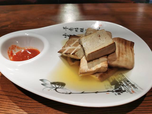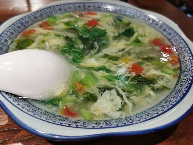 |孔门豆腐^当地必点的特色菜,或是很大一块儿熏制的,没有味儿,需要蘸酱。他家的酱大概是以番茄酱为底,不过今天太咸了,没尝出来具体还有啥,稍稍蘸一点儿,味道还蛮不错的。|鼓楼炒鸡^鼓楼炒鸡本来有辣椒,颜色会更好看,因为不吃辣,特地跟小姐姐说了免辣,所以只有一点淡淡的绿色点缀,鸡肉很嫩,量给的很足|紫菜蛋花汤^忘了说是一个人,所以上来是一大盆,蛋花、紫菜、西红柿、香菜颜色搭配的很漂亮,用淀粉略勾了芡,不会过浓,甜咸适中。|油炸冰激凌^甜品点了一份油炸冰激凌,外面焦焦的,里面还是冰冰凉,口感超级酷,强烈推荐。