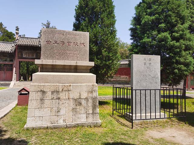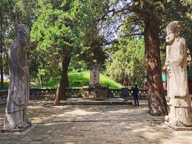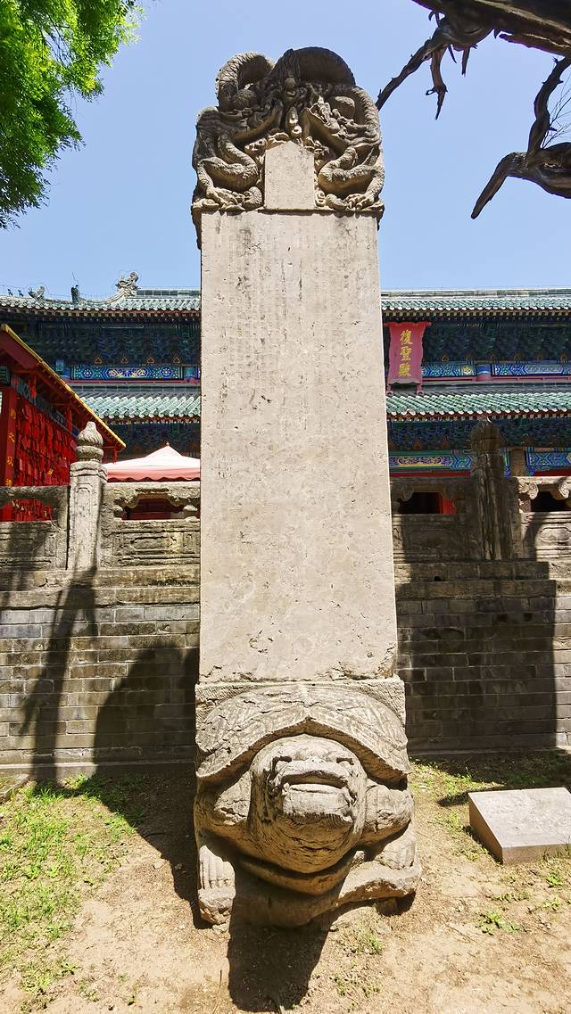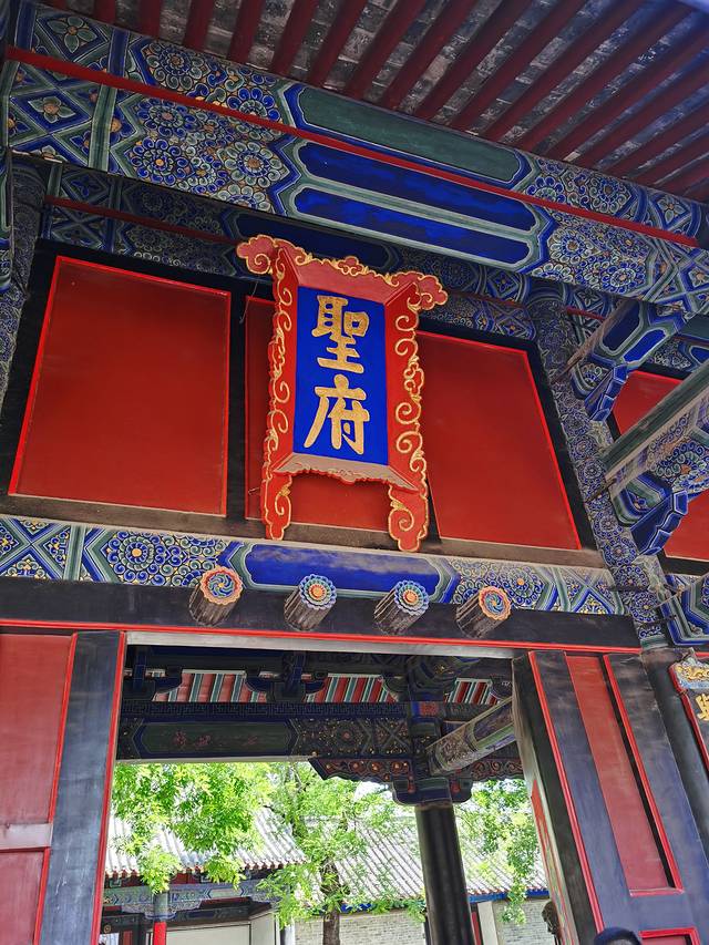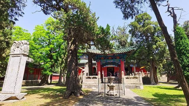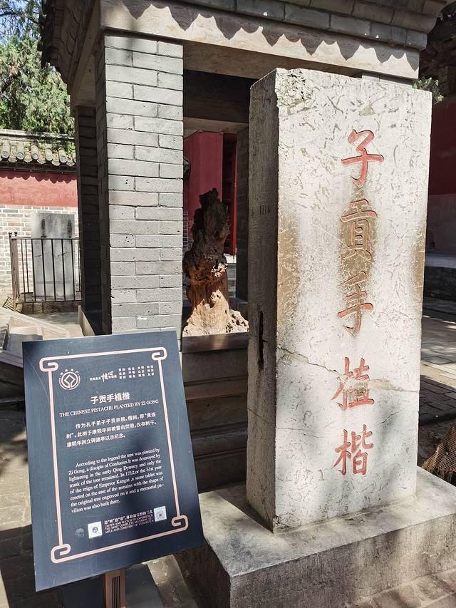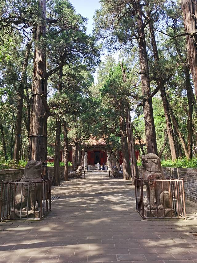 一进来就能看到鲁国故城的碑,旁边儿也有一些简单的介绍。沿路往里面参观,都是古树,植被丰盛,风刮过的时候很舒服。路两侧各个朝代的石碑有不少,保存完整清晰的不多,碑亭中保存是最完好的。最里面的正殿门是关着的,周氏后人或者来参拜的人可以进去,我来的时候里面有位老师正在参拜,没有打扰他,绕着殿转道后面 有点阴森森的感觉[发呆]又赶紧会来了。