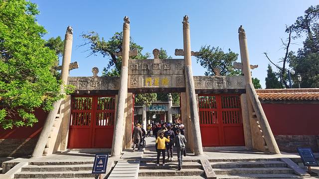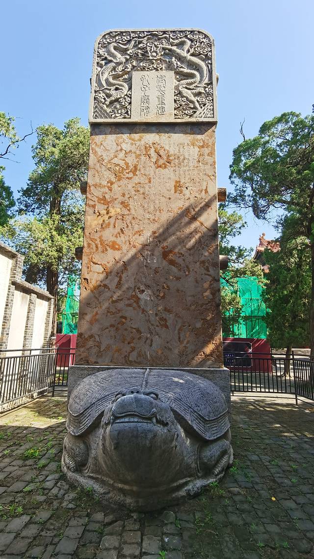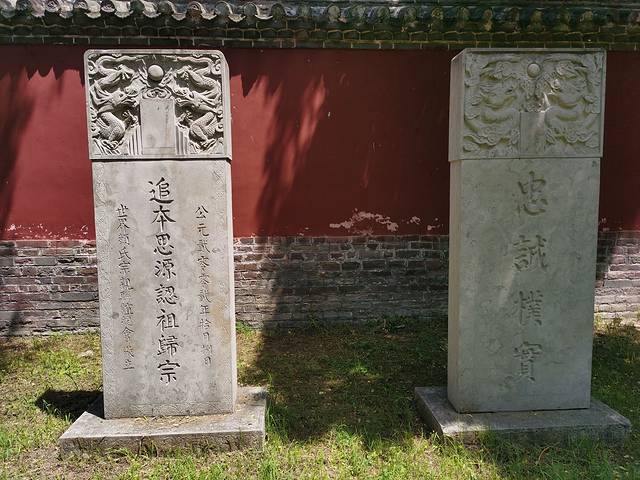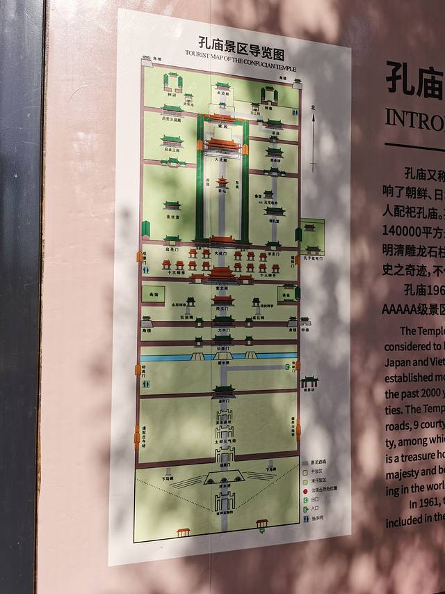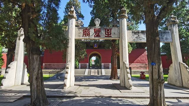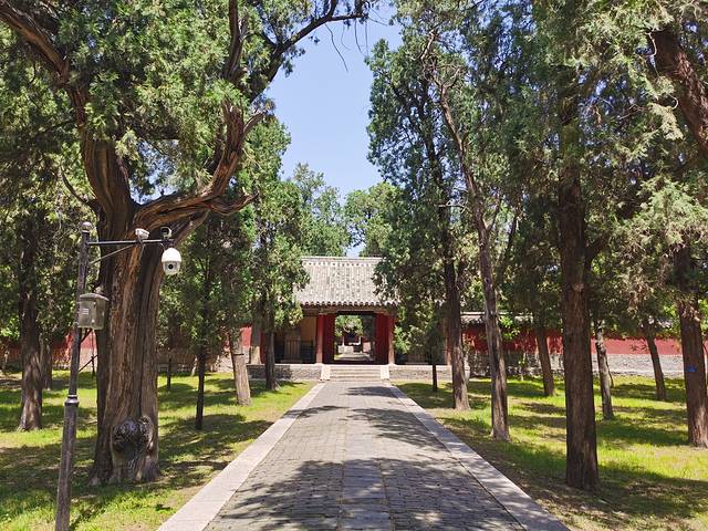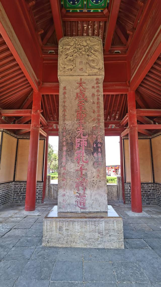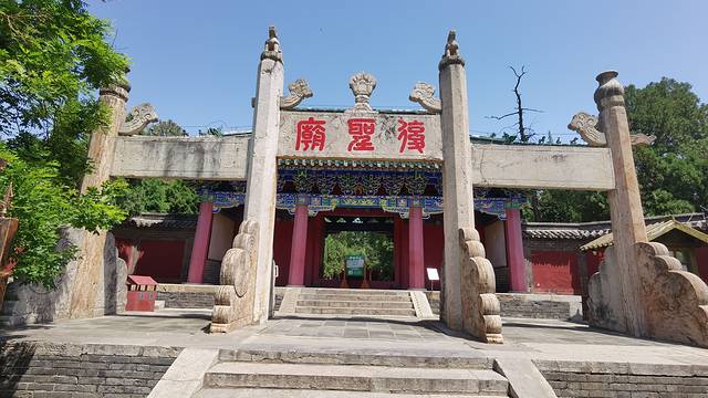 一进来就能看到鲁国故城的碑,旁边儿也有一些简单的介绍。沿路往里面参观,都是古树,植被丰盛,风刮过的时候很舒服。路两侧各个朝代的石碑有不少,保存完整清晰的不多,碑亭中保存是最完好的。最里面的正殿门是关着的,周氏后人或者来参拜的人可以进去,我来的时候里面有位老师正在参拜,没有打扰他,绕着殿转道后面 有点阴森森的感觉[发呆]又赶紧会来了。