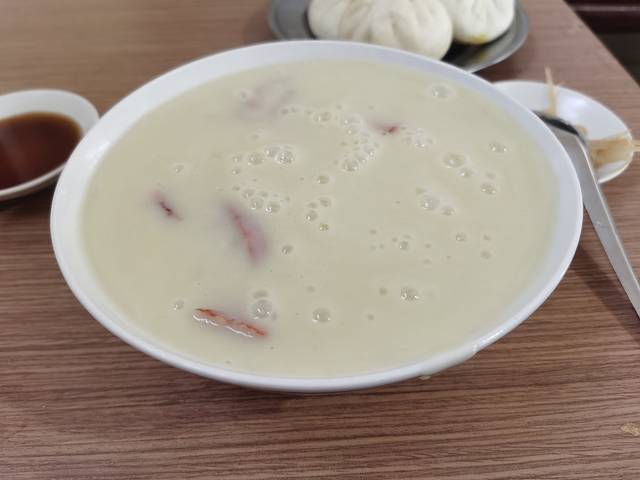 端好粥以后自己找座位,然后到后边买其他的,我买了一个肉包子,两个素包子。|羊肉泡粥^我看网上的建议是搭配黄豆一起吃,我牙口不太好,咬着费劲,所以就没有点。粥是糊糊状的,并没有味道。现切点儿羊肉是比较咸的,所以点的时候还真不能太多,粥会咸。店里也有免费的小菜儿,可以搭配着尝一尝。包子个头儿还可以,馅料都比较丰富,甜咸适中。
