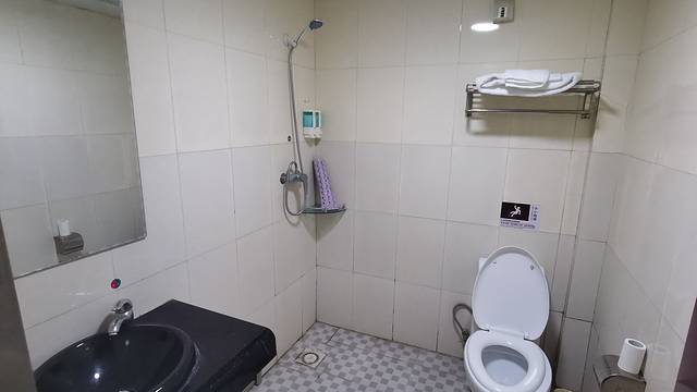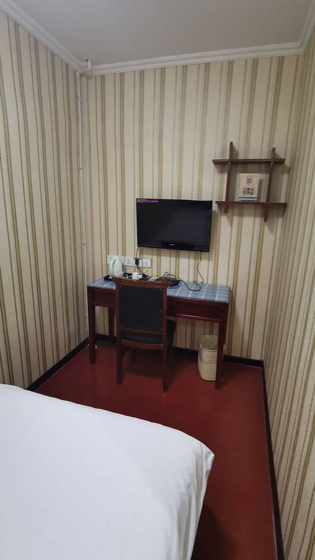 行程结束后,大巴车停在了游客中心对面儿,步行回酒店大概五分钟。提前预定个单人间,69块钱一天,房间面积不算大,1m2的单人床,空调,电视,写字桌都有。卫生间比较大,水很冲。