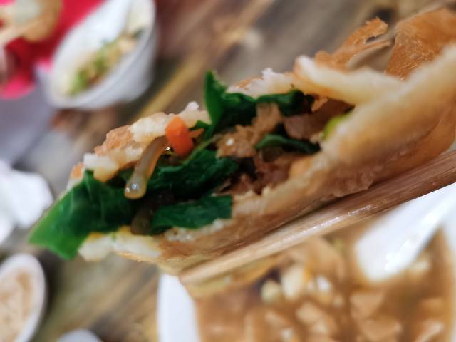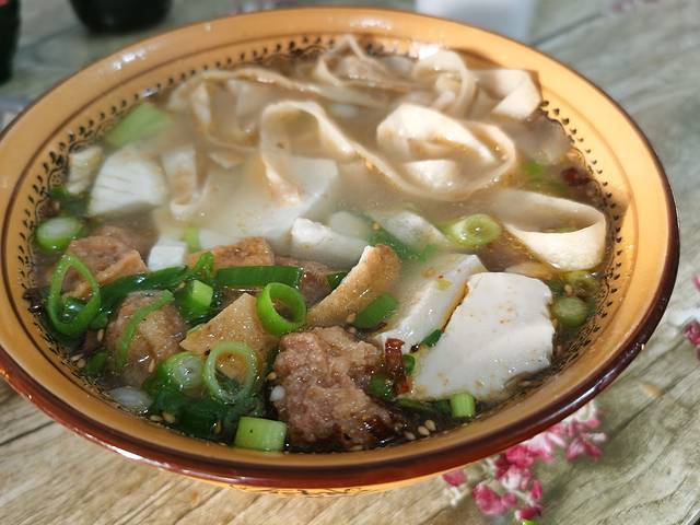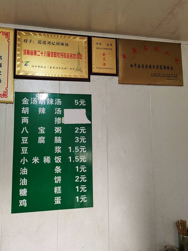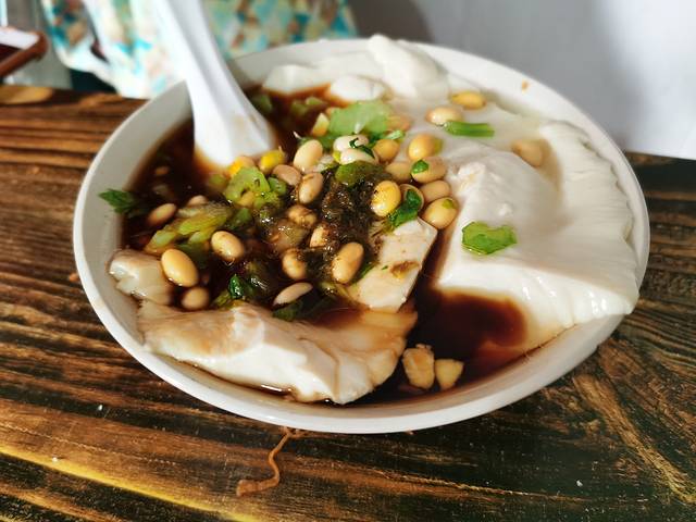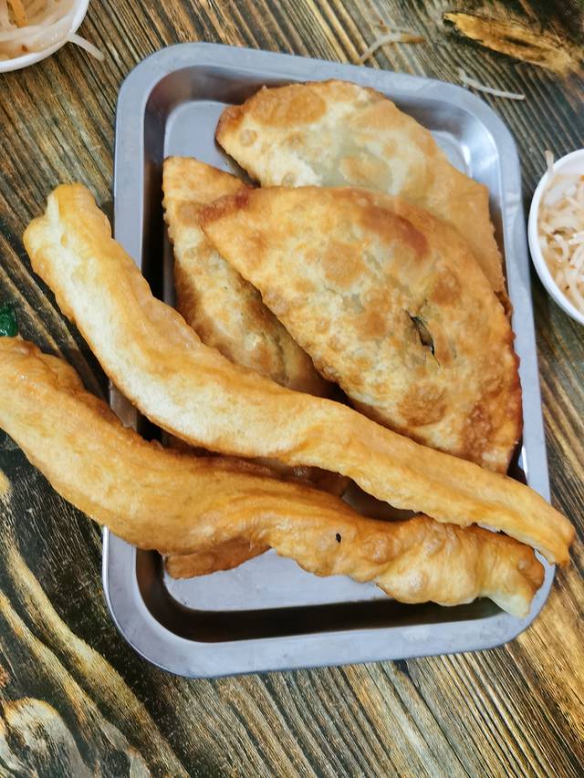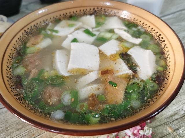 来之前我搜了附近的美食,很多,所以就挑了这家点评上收录6年的老店来尝尝。位置就在火车站附近,走近才发现是个苍蝇馆子,8点时候还是满满的人,主打的是胡辣汤。金汤胡辣汤,胡辣味道超级浓,喝一两口身体就已经开始发热啦。豆腐脑上面放的有豆子咸菜,我是第一次尝到,感觉还是 很新鲜的。不太习惯浓胡辣汤的人可以试试两掺一半胡辣汤一半豆腐脑,一样哗哗出汗,但是感觉要好一些。菜角是油炸的饺子,馅里面大概有韭菜、胡萝卜、粉丝等等,用料很实在,一块钱一个,很良心了。