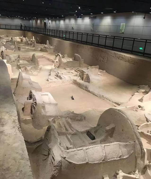 门票 30 ,网上团购价格更划算。进来以后发现博物馆其实不大,是在原址基础上的以保护为主的博物馆,下面的坑里都是原始状态,可以清楚的看到6匹马,证明是周天子的陪葬车马坑,四周是相关的讲解,参观大概半个小时。