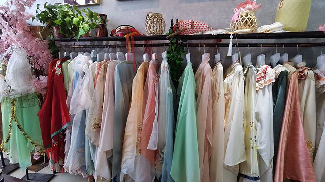 来 洛阳 肯定是要体验一下汉服的,提前在网上搜了很多家,也电话咨询了5-6家,只有这家保证拍摄时候是一对一服务,不会中加人,所以就选了他家。提前微信预约了晚上6点拍摄,4点到了她家,虽然是周五,人还是很多。她家一二层是女装,三层是男装,选好衣服以后在一层找老板付尾款领造型卡和化妆卡然后排队等待。差不多等了一个半小时吧,我选了唐装夜宴的衣服,造型从小红书上找了一款,请店员小姐姐参考着做的,小姐姐很认真,连饰品都尽量弄得相似的。6点时候摄影师Divid已经到了,他建议我换了绣花鞋,然后带着我去古城拍照啦。说是一小时保底30张,最后看照片成品是45张,时间是40分钟,也还好啦。小哥哥很妆业,让我摆个很多我觉得奇怪的姿势,不过效果很不错。