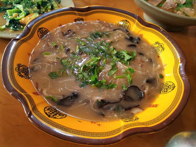 白马寺门外很多饭店,不过提前在点评上搜了这家老字号,距离大概六七百米,不过真的没有白走,他家的烩面是大赛第一,店里也有水席。当地的汽水叫海碧,三种味道,桔子味最好喝。烩面很大一碗,肉很多,建议饭量一班的小伙伴两人点一碗,顺便尝尝其他菜。点了炒青菜,然后店员小姐姐说青菜不够了,加点豆腐可以不,所以就尝到了豆腐青菜,味道还是不错哒。点了 一个燕菜,不过因为有清真的小伙伴,没有放火腿,图片看着一般,味道还可以,可能早上喝了很浓的胡辣汤,觉得这个燕菜的胡辣程度一般,不过汤汤水水很适合驱寒。