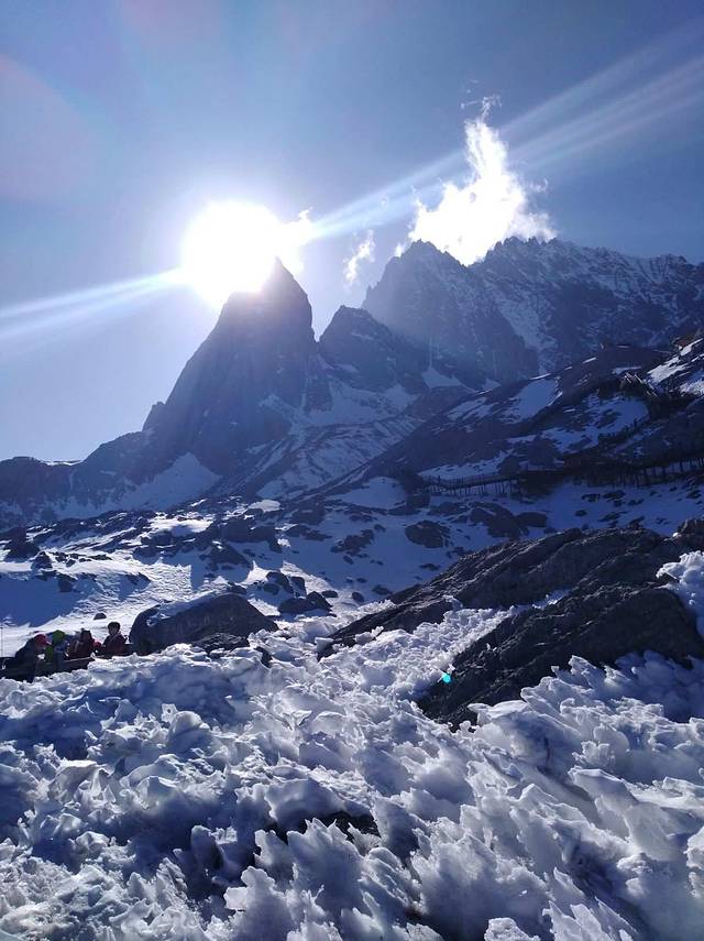 从蓝月谷坐缆车上到玉龙雪山,我们带着氧气瓶,担心会高原反应,结果没用上,雪山很冷很美。玉龙雪山位于云南省丽江市玉龙纳西族自治县境内,海拔5596米,是北半球最南的大雪山。整个玉龙雪山集亚热带、温带及寒带的各种自然景观于一身,构成独特的“阳春白雪”主体景观。雨雪新晴之后,雪格外的白,松格外的绿。