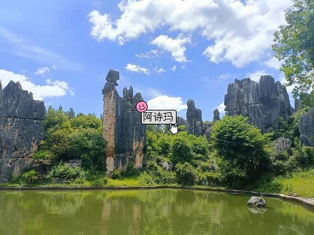我们下到石阶下面,水边玩扔石子。马路边吉普车拍照