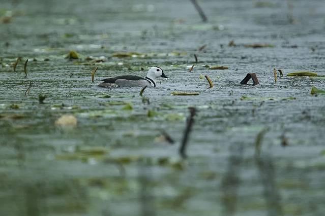 又长,可爱极了。还有麻雀、白胸苦恶鸟、珠颈斑鸠、乌鸫等,和一些不太认识的鸟儿,它们或停在树枝上、或停在莲蓬上、或停在芦苇杆上,时而自在地整理着自己的羽毛,时而细微地调整着角度观察着四周,突然目标明确地朝某个方向飞去,好好的美食一餐。一只嘴巴为黄色,嘴基与额甲为鲜红色,脚为黄绿色,脚上部还有一鲜红色环带的黑水鸡,正扯着水草准备营窝筑巢,实在是太有趣了。