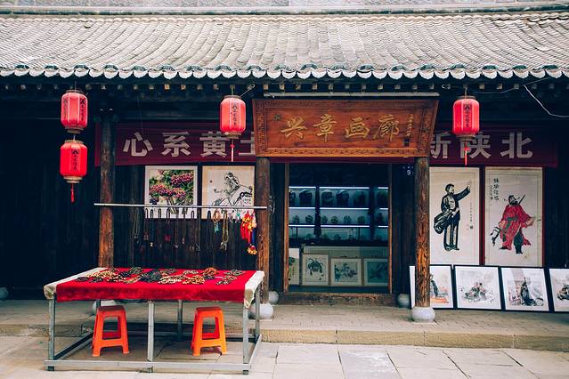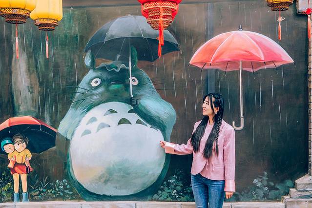 一路向北,登上“镇中央”的中兴楼,便可得见古镇全貌——以中兴楼为中心点,东、南、西、北四条街,或古老、或怀旧、或文艺、或小清新,各有风格。如果说南大街是充满历史印记的街道,那么北大街就是毫无疑问的“网红打卡点”,墙壁上一幅幅艺术创作色彩缤纷,童话、动漫、古风应有尽有,随手一拍就是文艺范儿。