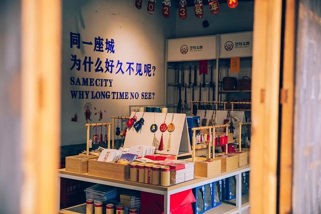 从“永兴门”进入古镇,一如走进了唐诗宋词的烟柳画桥。石子铺就的小路、灰色砖房的院落、木制门窗上的精美铜环……无一不透出古朴厚重的明清风貌。尤其是远山间的雾气飘散开来,更彰显出几分仙境般的朦胧色彩,颇具诗情画意。放眼望去,南大街上游人三三俩俩,两旁的商铺经营着美食、文创产品,散发出浓郁的文化气息,显得恬静而自在。