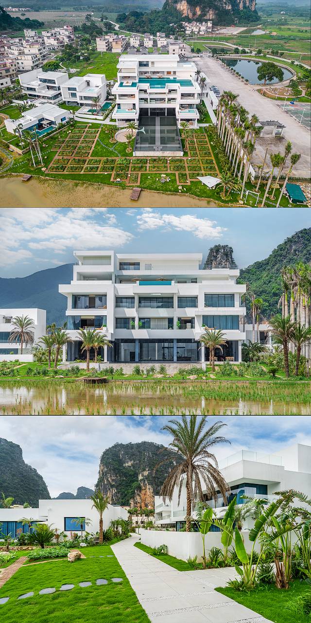 🏨「云栖陌野度假酒店」坐落在乡野阡陌和峰林美景环抱之中,视野开阔,既可观赏日出亦可欣赏日落,景色美丽如画,田园风光更是一览无遗。时尚现代的简约外观设计与自然融为一体,是都市人逃离烦嚣、舒缓压力、探寻乡野生活的理想度假胜地,或许这就是我们一直所向往的“世外桃源”。