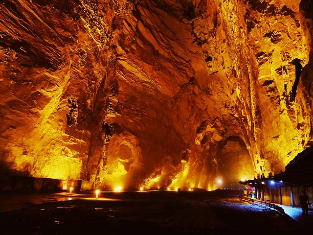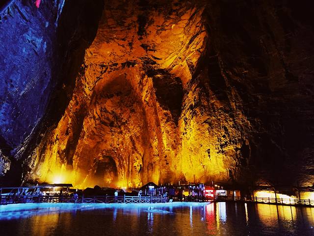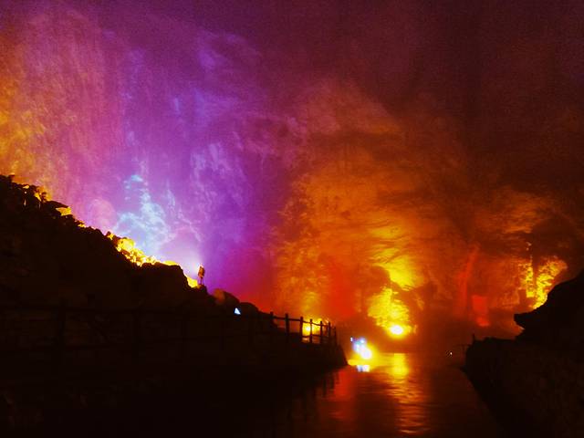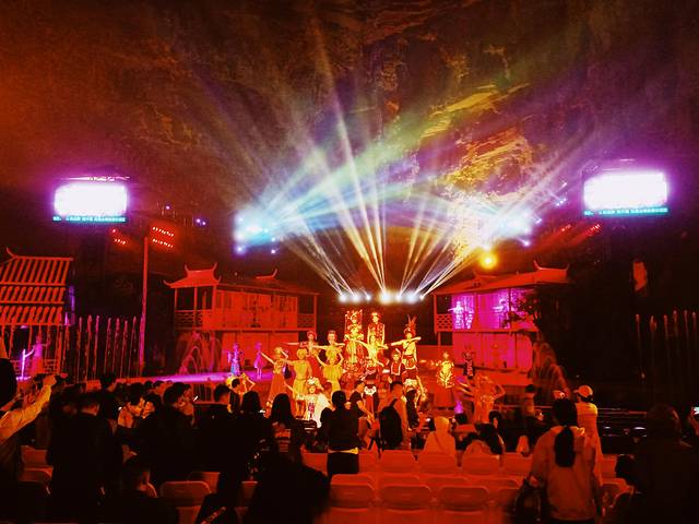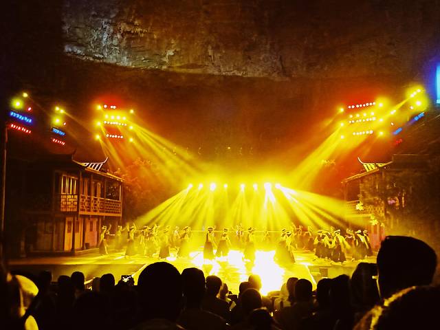 腾龙洞实景演出是由非常专业的舞蹈团队、表演团队共同组成的,以土家族的祖先“廪君”化为白虎的故事作为主线,绘声绘色地演绎出一段精彩的神话传说。精妙绝伦的舞蹈让人眼花缭乱,如果你觉得实景演出还是意犹未尽的话,再往洞深处走一段,那么你将会看到一场视觉盛宴——激光秀。
