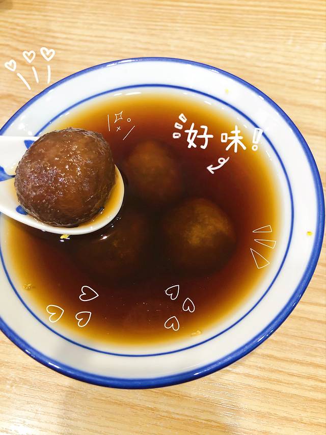 PS:四喜汤圆外皮由藕粉制成,每颗馅料不同,再配上桂花红糖水