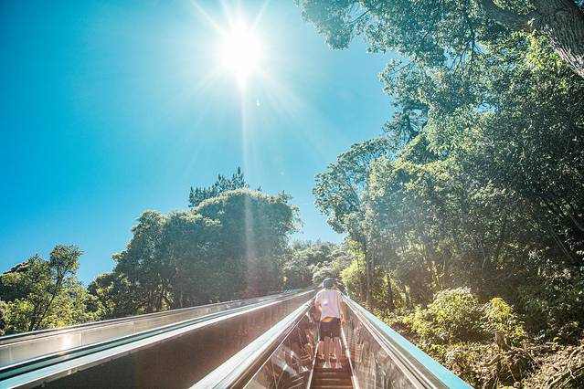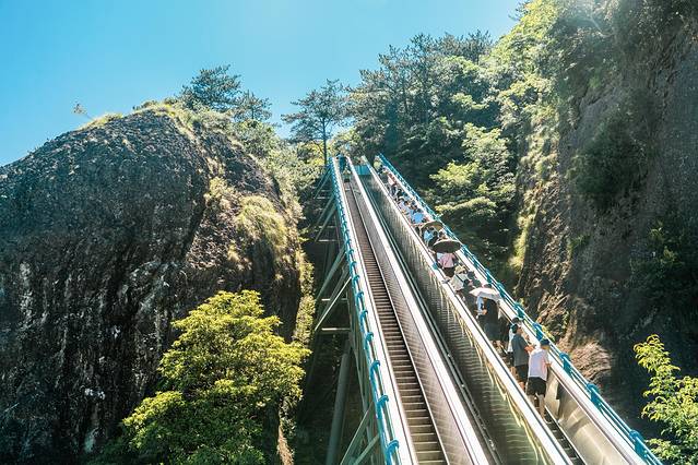 下了缆车,原本摩拳擦掌准备开始爬山了,没想在山里居然还安装了电梯,完全不用费力爬山了,直接乘着扶梯便可以登到高处!简直就是懒人的福音啊!