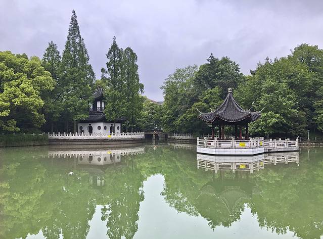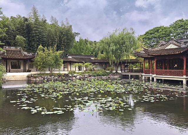 园内的亭台楼阁多临水而建,水景配合,体现了“亭台到处皆临水,屋宇虽多不碍山”的意境。园内主要建筑逸野堂、梅花厅、春藻堂、翠霭楼、柳带轩等水榭曲廊,造型秀美精致,这些建筑既是风景点缀,又是观赏风景和遮风避雨休息之处,以曲折长廊花墙分隔,形成大小不等的自然空间,哈,在早上时光中这些空间均被活动的老人所占有,在如此亭台中打上一套太极或八段锦,真有一种梦幻之美呀,南翔老人好幸福。