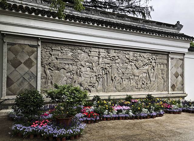 南翔壁,雕有“白鹤南翔”的图案,形象地向游人介绍着南翔镇得名的美妙历史传说。