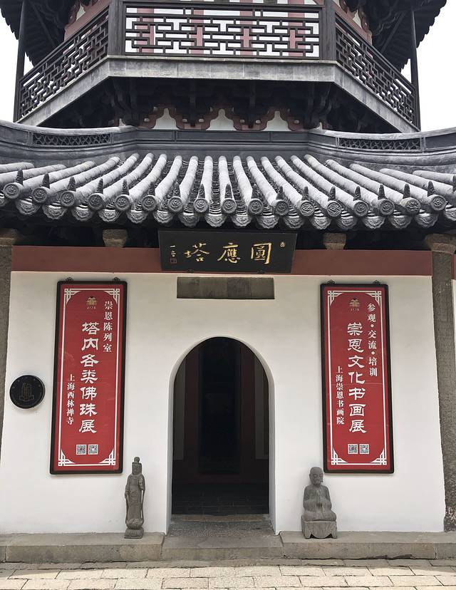 向东远远就看见了金碧辉煌的西林禅寺,黄墙黑瓦高大雄伟的山门飞檐斗拱,门前四尊石狮守护佛地。墙上两侧“若般”、“脱解”道出佛教真谛。而由德高望重沪上名家杜宣老人书写的:“古刹立云间七纪兴衰尚留松江水,禅风到西林十方护持重显宝塔光。”一副对联更是道出西林寺的源远流长的历史及众信崇拜之意。院子很大,此寺进香礼佛的香客众多。