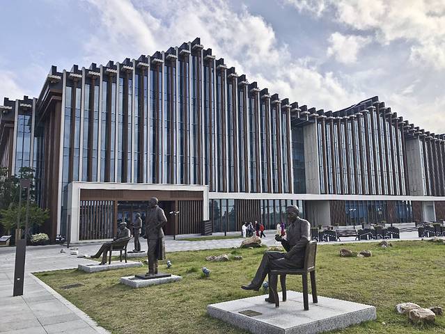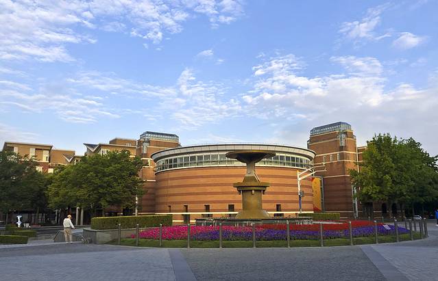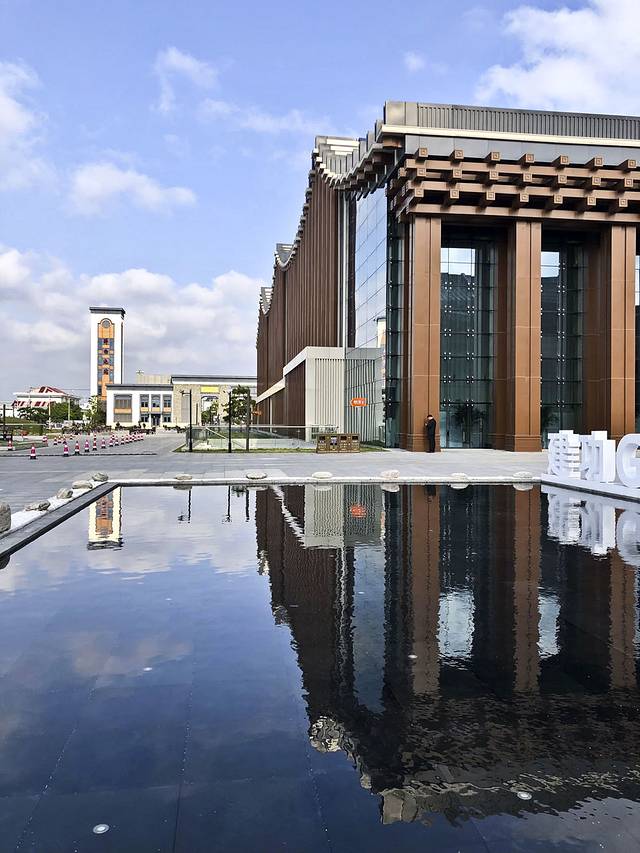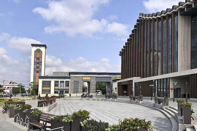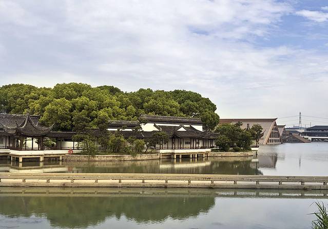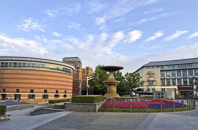 小小的松江火车站这里就有几个漂亮的现代建筑,这里是松江人文活动中心,主要由云间文艺会堂、云间剧院、松江文化馆新馆和松江图书馆分馆组成,将成为新时代松江标志性文化功能中心。现代建筑的棕红色立面设计如同一条条竹简,倒映在水池中分外养眼。拍了几张美丽的片片。