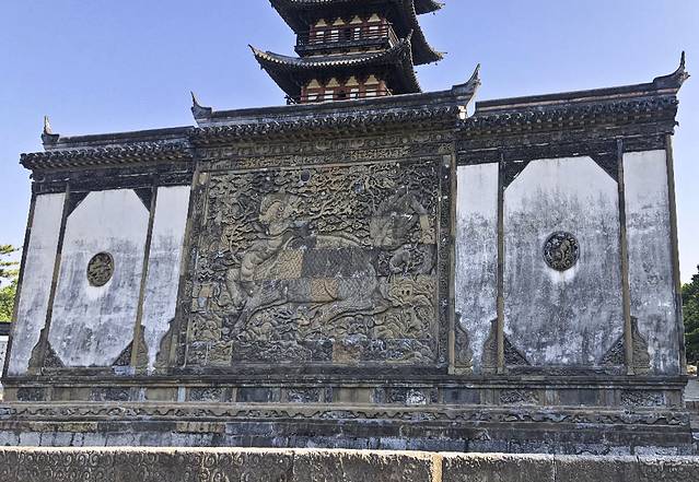 来到方塔下,先被塔前的照壁吸引去了目光,这是上海乃至全国最古老、最精美、保存得最为完好的大型砖雕艺术珍品,约30平方米的大型砖刻浮雕,内容丰富,形象生动,刻艺精致,真是风采独具呀。