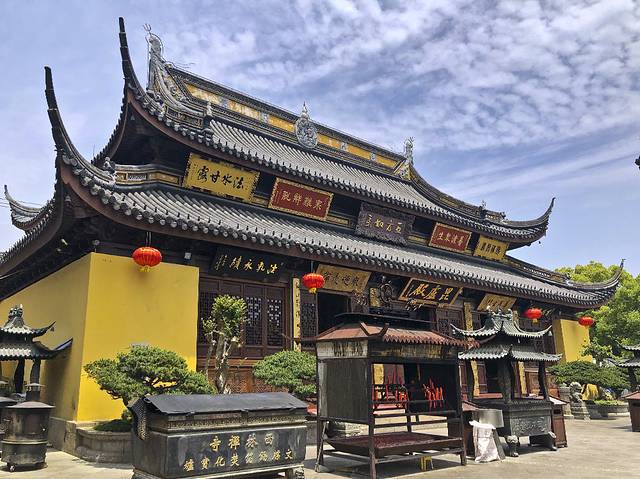 再是不舍也得出来呀,今天还要游览仓城老街呢。乘13路公交到达灌顶禅院,也是松江的古老禅寺,但院内的古建筑不多了,以后建筑为主。