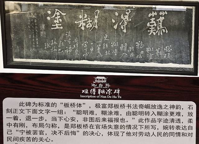 从“十鹿九回头”向左是历史艺术碑廊,这里有《赤壁赋》真迹石刻、《难得糊涂》石刻及邦彦画像石刻等,艺术价值连成。