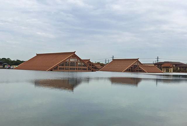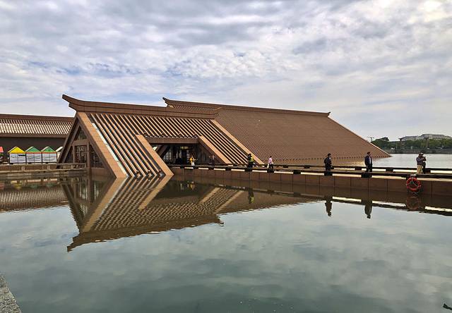 广富林是一处新石器时代遗址。从这里发掘出崧泽文化地灶1处,良渚文化墓葬32座,广富林文化墓葬8座,各时期灰坑、灰沟、水井、宴会点等遗迹300多个。 广富林遗址文化层分为三层,上层为春秋战国时期的吴越文化层、中层为夏商时代的马桥文化、下层为新石器时代的良渚文化层。是一个很有内容的遗址展示馆。而且整个景区设计也是非常新颖别致,大型现代展馆设在水下,只有半截建筑飘浮在水面,绿水红屋顶格外醒目,这片“飘在水上的大屋顶”听说晚上的夜景也是相当漂亮。