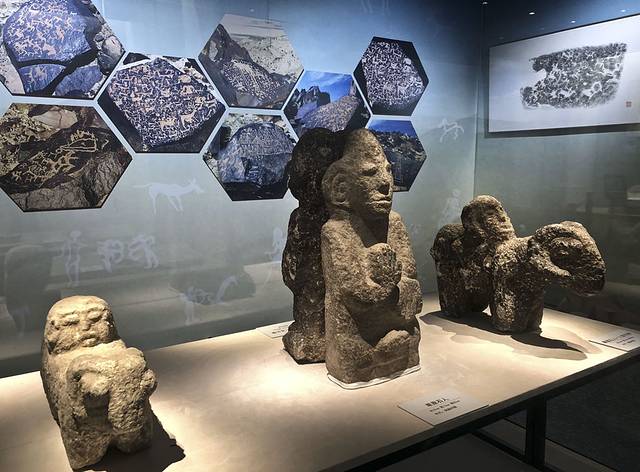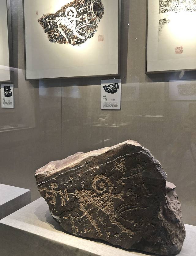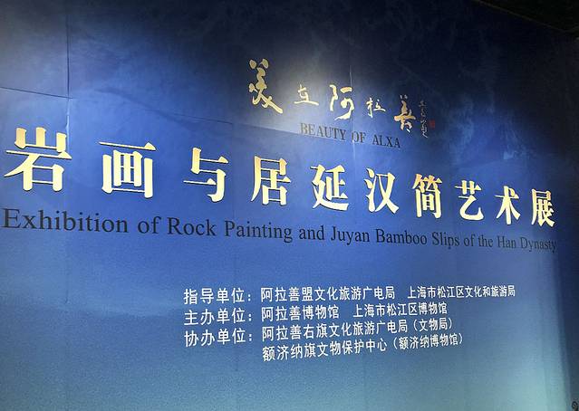 休息1小时,下午参观松江博物馆,有阿拉善岩画和居延汉简展。对岩画不陌生,前几年去银川游览过岩画景区和展览馆。今天重点了解居延简读。