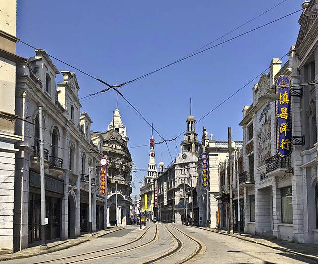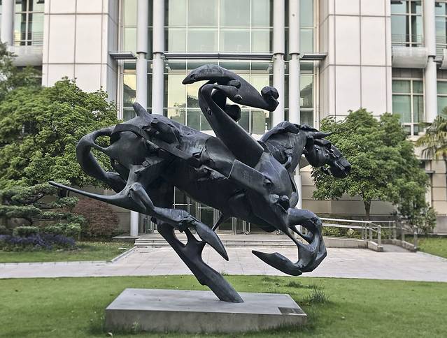 向西过去有奔马现代雕塑,西边的街道上便就是仿欧式建筑了,几家时尚餐厅。