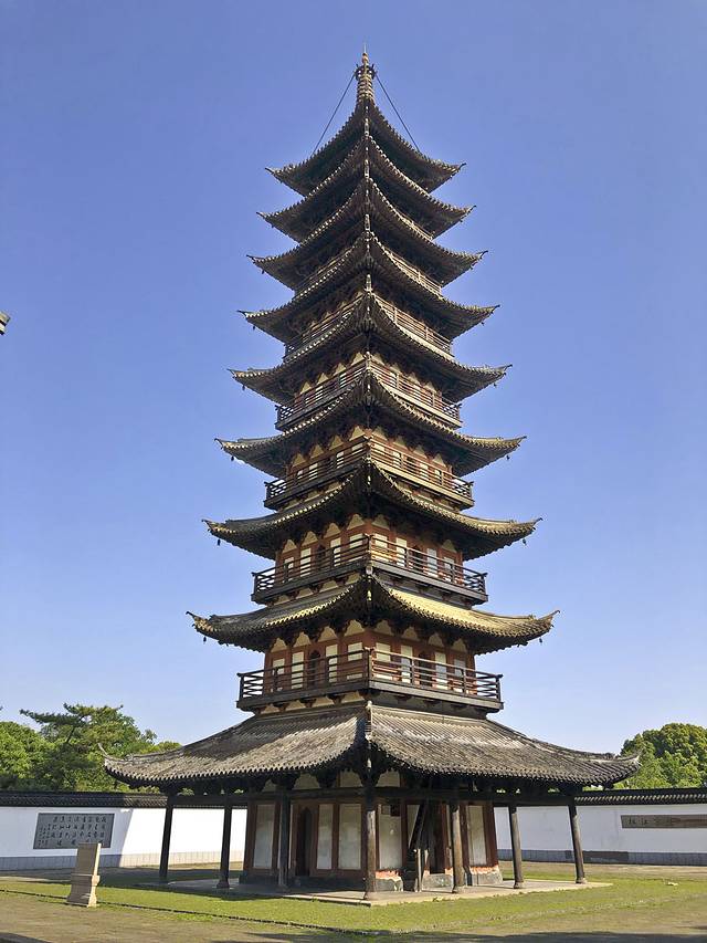几天的游览后发现,松江地区的所有古塔外形均类似,大同小异。不知原本如此还是后修成这样的。在博物馆中见到过佘山秀道者塔的老照片,根本没有大大的层檐,不知是旧时檐被破坏掉了,还是修缮时后加上的。其实我热爱古迹又行走多年,也见过修缮时改变原文物的事例,心中很是不赞同。即是修复就应该保持原貌,不知文物部门是怎样考虑这个问题的。