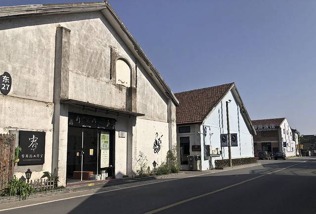 在去方塔园的路上意外发现了云间粮仓,虽然也是我的计划中景点,但不知具体位置,见到了还是有点惊喜。云间粮仓前身是始建于上世纪五十年代的粮仓,留存了一段特殊的文化记忆,康熙两次下江南都曾舟行至此,这里曾立有一块光绪二十年刻的碑《重修普照寺碑记》,属于松江区文物保护单位。好大的院子中几栋当年的粮仓,有的改成了饭馆,有的成了泳池。总是个古迹,走走看看。