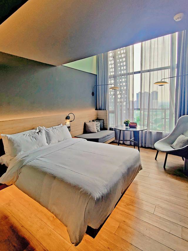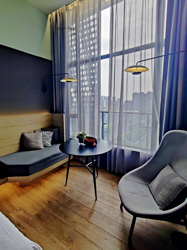 我们订的是复式豪华双床房,上下两层各一张大床,整体风格偏简约精致。下面那一层有沙发+大窗+电视,还有一个衣帽间+大的全身镜,卫生间也是在1楼,干湿分离,最重要的是很干净,无论是厕所还是房间的卫生都搞得蛮不错的。