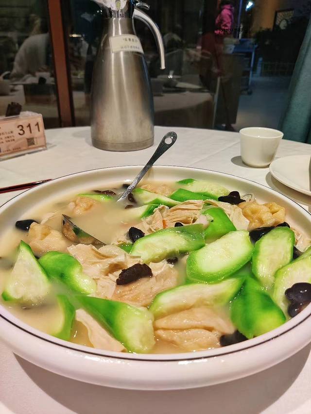 腐竹、鱼腐、丝瓜、木耳一起煮,有种大杂烩的感觉,但整体的口感是很和谐的,而且汤蛮鲜甜的。