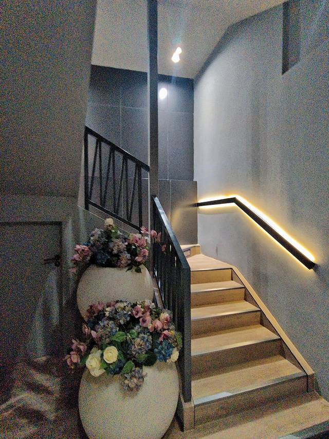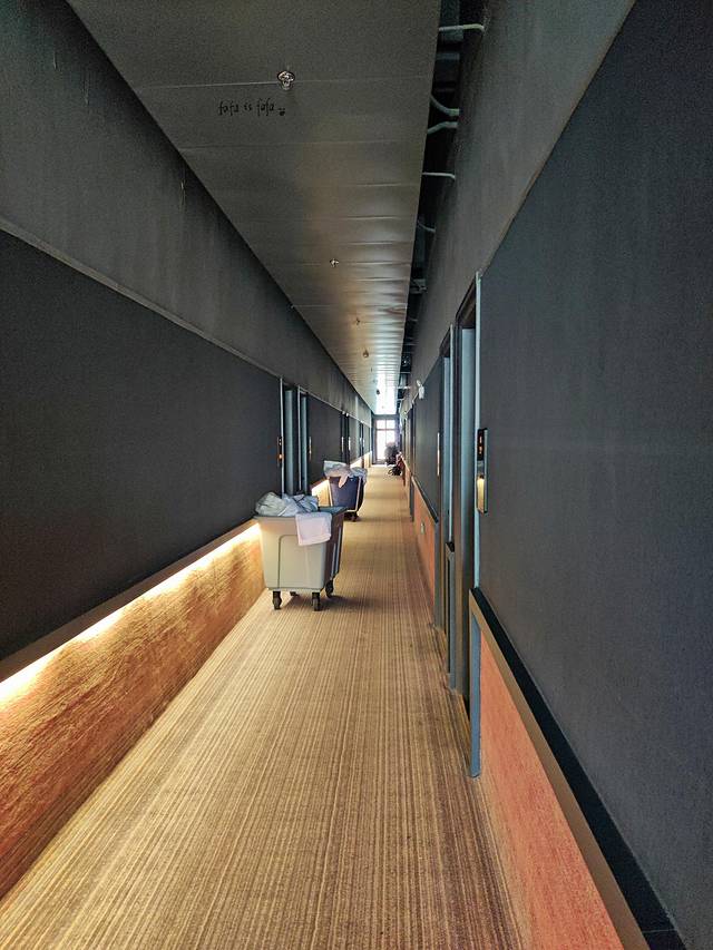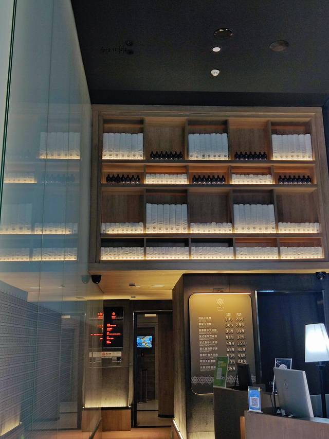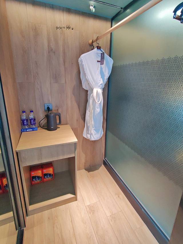 右边是前台办理入住的地方,上面的设计是蛮神奇的,用了一个木柜子,里面整齐地摆放了毛巾和洗浴用品,在前台帮忙办理入住的工作人员态度蛮好的,给人的初步印象相当不错!