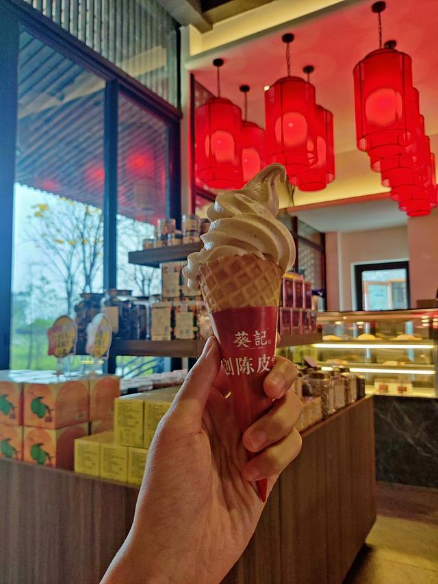 江门新会特有,在古劳水乡的葵记可买到,将雪糕和陈皮融合在一起,吃起来有点颗粒感,味道很特别