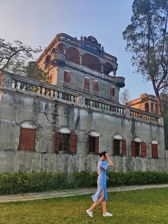 虽然是在村子里头,但十几栋碉楼和田园风光的结合,有一种独特的美,而且个人觉得旗袍真的和它很配!