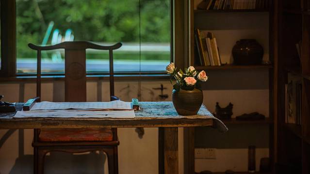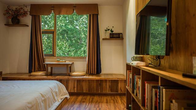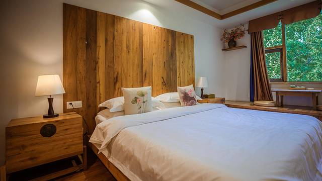 可能还没有到旺季吧,林间的独栋小木屋还没有开放,我们入住合院,房间里精致的老物件,一桌一椅,都看得出主人对这里的用心。
