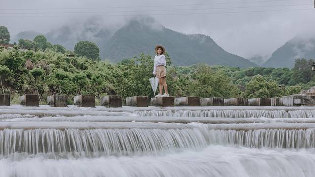 古镇入口的阶梯瀑布分外好看,带给我们夏日无尽的清凉。