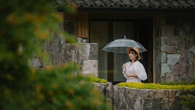 感谢一场雨,放慢了我们的脚步,在房间里聆听雨声,撑着伞漫步民宿超美的公共区域里,这,又何尝不是度假的另一种打开方式呢?