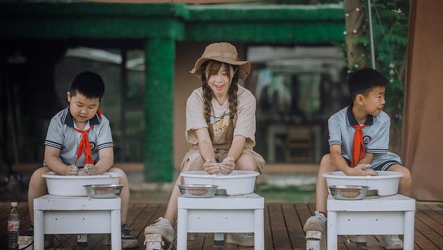 也混进小朋友们的队伍中去,来一场婺州窑非遗体验,和小朋友们一起快乐着!