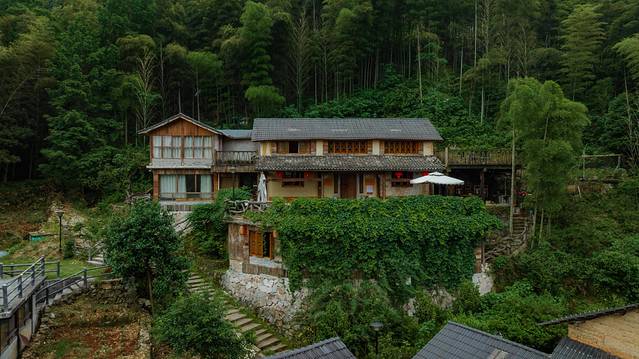 背倚森林,面向茶田,林间的小木屋,原生态的石头房,拾级而上的山梯,这,是不是就是你曾经设计过的归隐田园的生活?