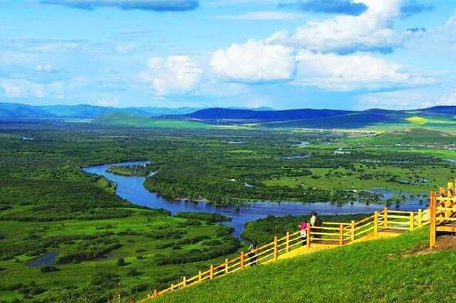 老舍先生誉为“天下第一曲水”的莫日格勒河,沿着莫日格勒河驱车深入草原十几公里处,一路上深入草原腹地,穿越草原,在至高点观看“天下第一曲水”的莫日格勒河的美景,这里也是寻龙诀的拍摄地,是真正的原生态景观,视野壮观辽阔,看那弯弯曲曲的河流在草原上流淌着,百转千回,仿佛是草原上一条盘旋的玉娇龙,每天在草原上尽情地展现着自己的妩媚身姿。一望无际的草原,成群的牛羊、骏马,还有洁白的蒙古包尽收眼底,会让你不禁感叹这才是真正的呼伦贝尔大草原。