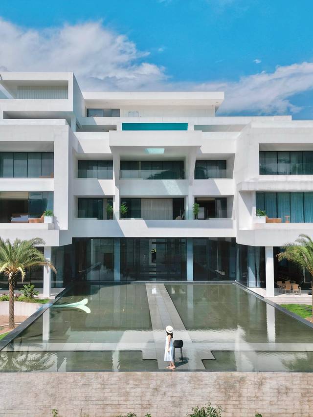 朋友说这家酒店刚开业不久,景观跟桂林的民宿有得一比。富有设计美学元素的纯白色房子,由一栋主楼+3栋别墅组成,远远看过去非常有辨识度。“云栖陌野”这个名字充满诗意,配得上眼前的诗和远方~