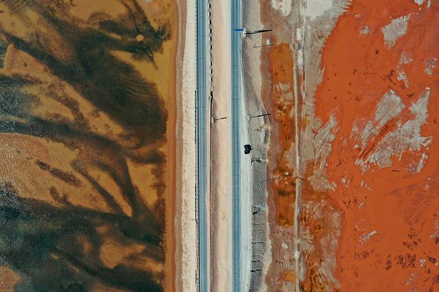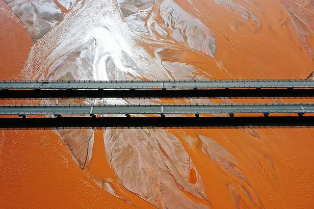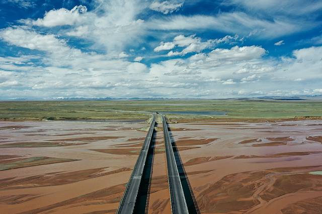 2、沿途会经过著名的“网红点”——大地之血,它是一条干枯的河床,从天空俯瞰地质呈红色,形似流淌的血液,位置大概在G315路碑757公里处,这里无法停车,想拍摄的朋友可以提前飞无人机跟拍。