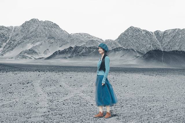 1、黑独山的颜色主要以黑白为主,很有水墨画的感觉,所以拍摄着装上可以考虑国风的汉服或者亮色飘逸的长裙。