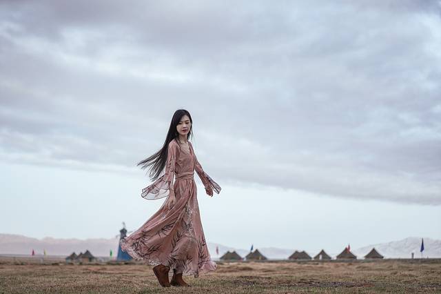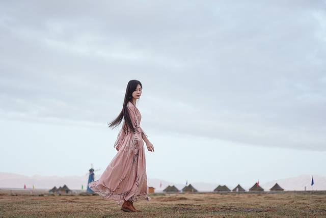 3、除了大部分场景都百搭的红裙,黄色、还有飘逸的汉服这些也能拍出很好的效果。