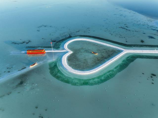 1、翡翠湖从天空俯瞰视角很震撼,但大风沙尘天气一定要谨慎飞行无人机,以免坠机