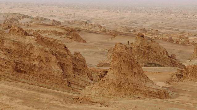 2、雅丹景区很大,如果乘坐观光车第一站会直达景区的核心位置,只有这一站可以爬上雅丹山顶,回程停靠的另外两站都是被围起来的,只能在地面观光。