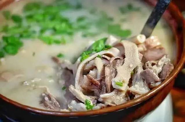 其有别于简阳、成都、华阳、威远做法,汤在制作过程中讲究作法,汤味浓香而酽实,入口肉感滑腻,其沾料佐以山椒和青椒碟为主,也可用油碟。汤类主要有羊肉汤、羊杂汤、羊蹄花汤、羊脑汤、羊肺汤。天寒冷时,喝上羊肉汤能抵御寒冷。